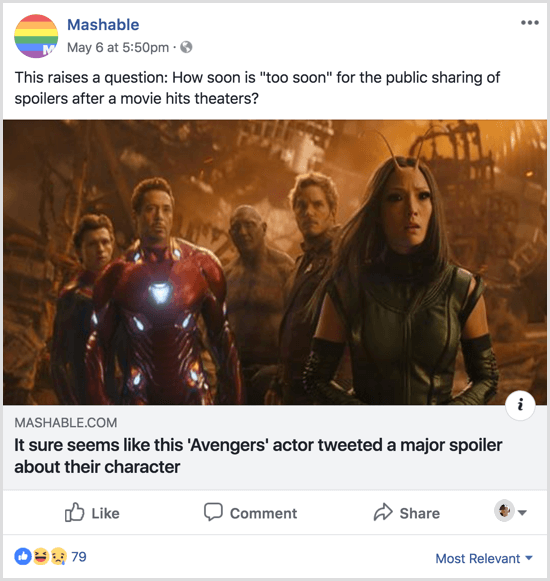 Χρειάζεται μόνο να προσέξετε ώστε να μην είναι του στυλ “κάντε like και σχολιάστε” γιατί αυτού του τύπου τα δολώματα τιμωρούνται από τον αλγόριθμο του Facebook.